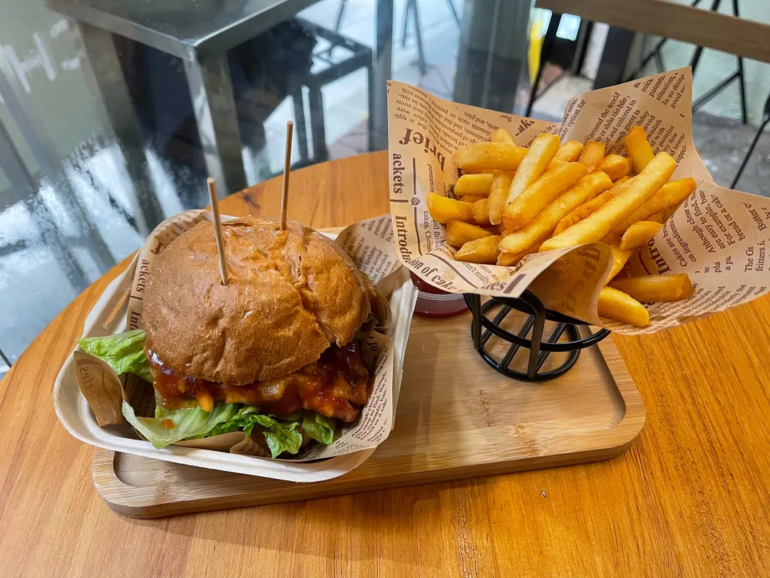咕嚕肉排漢堡伴焦糖菠蘿