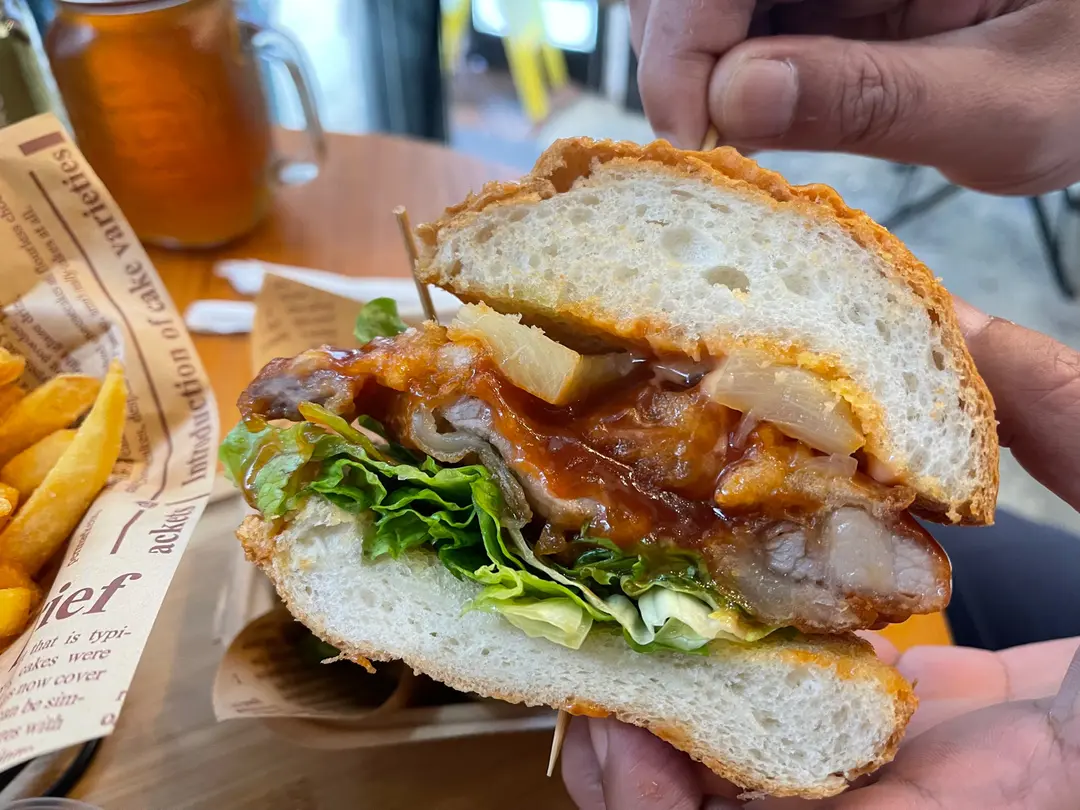 咕嚕肉排漢堡伴焦糖菠蘿