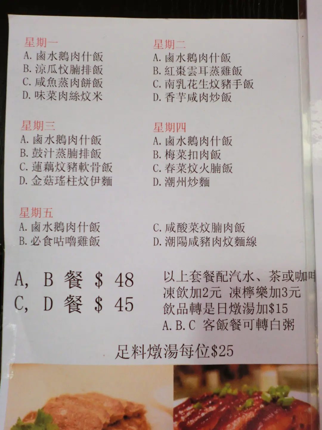 平日供應午餐:由 $45 ~ $48 ,送汽水 / 咖啡 / 茶,凍飲 +$2 經濟實惠!
