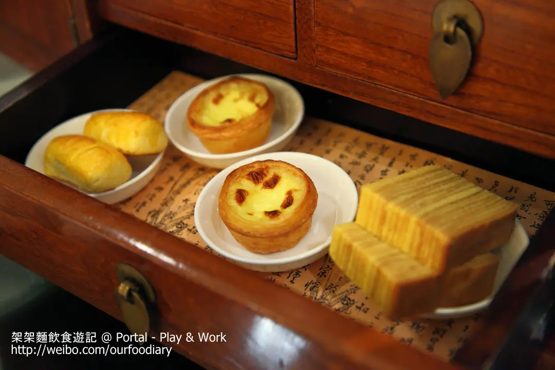 底層即甜點層,是較西化的葡撻,雲石蛋糕和台式的鳯梨酥