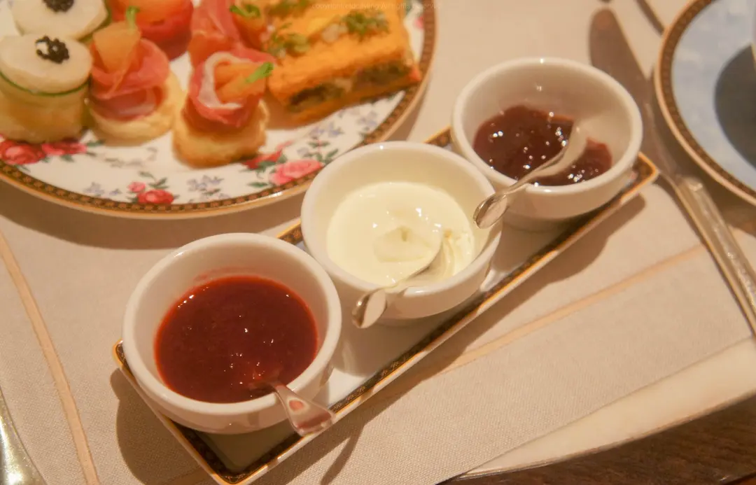 厚忌廉、士多啤梨醬和玫瑰花醬