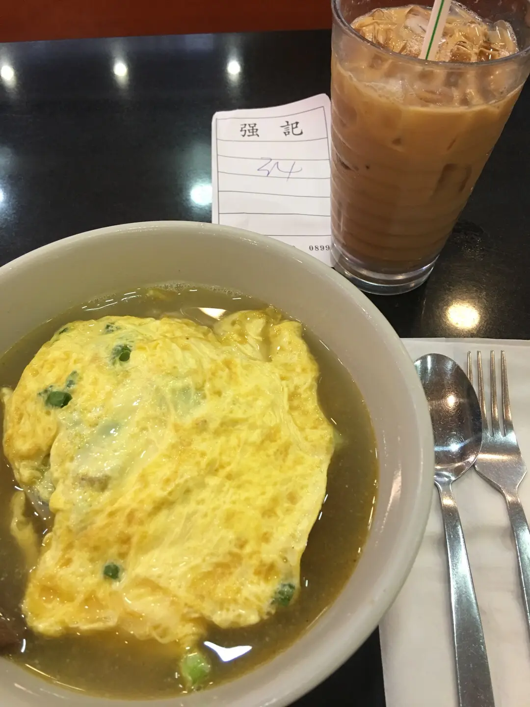 沙嗲牛肉公仔麵和青蔥炒蛋