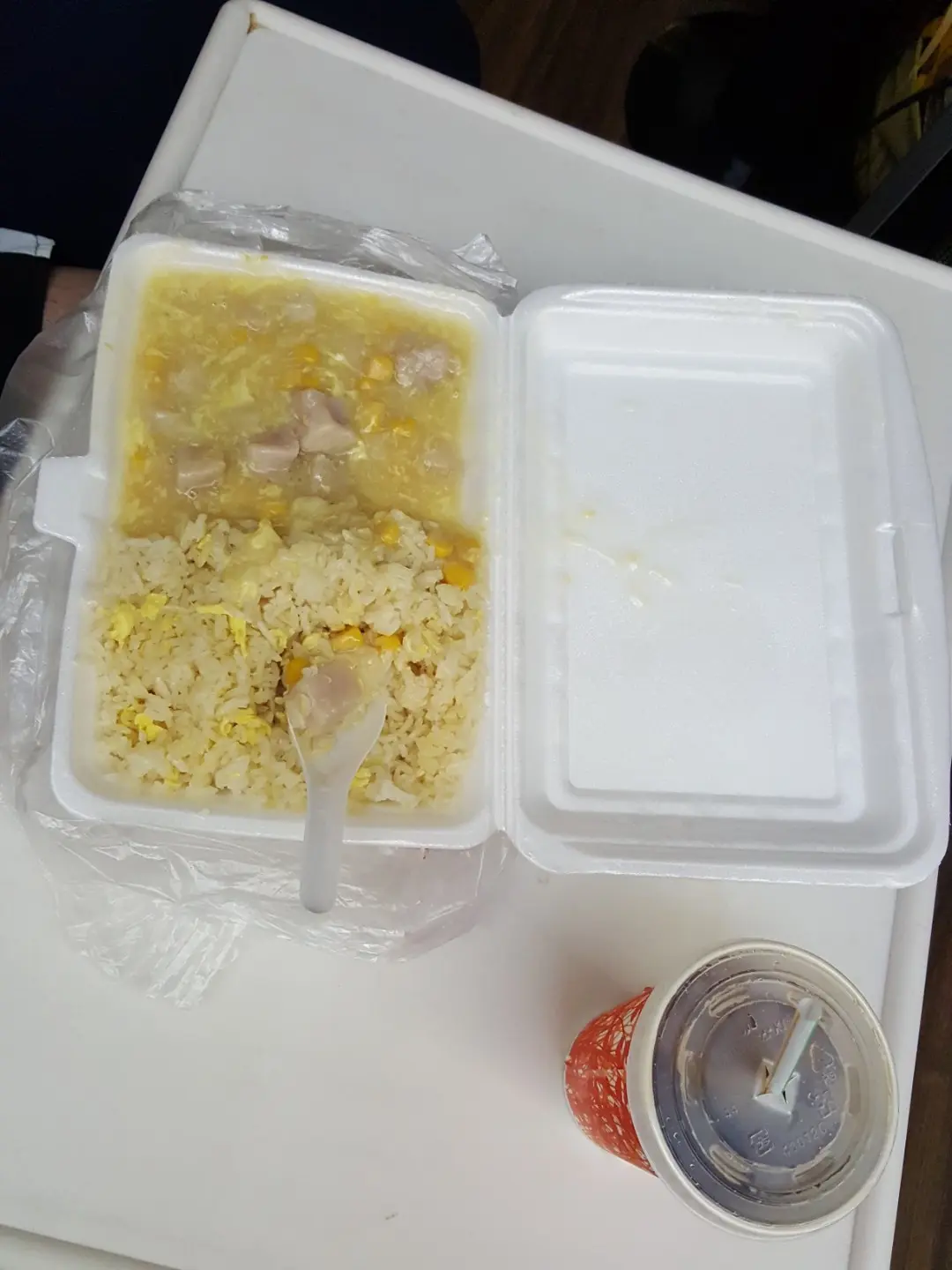 粟米肉粒飯炒底+凍檸茶(外賣)