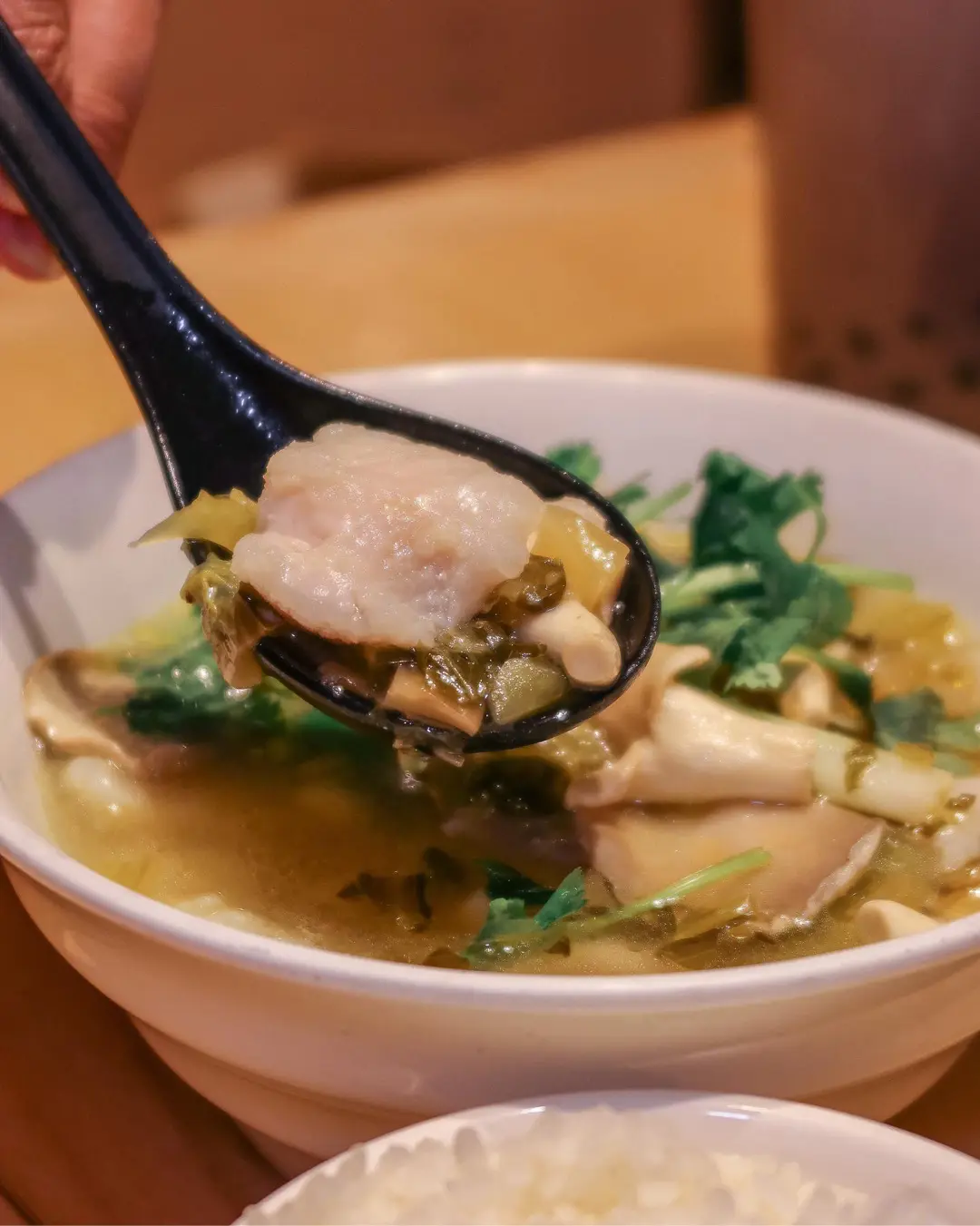 香茜酸菜魚配珍珠飯