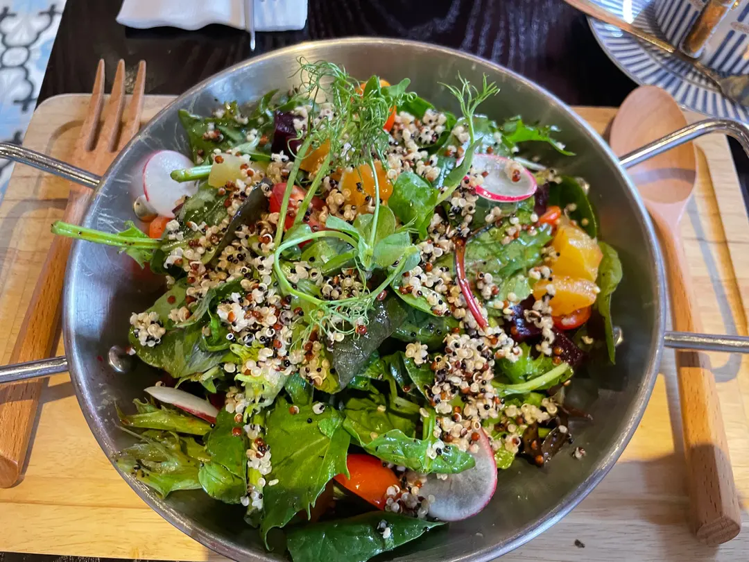 烤日本有機沙律紅黃菜頭藜麥沙律配熱情果汁