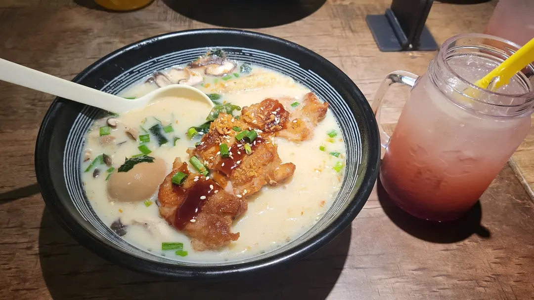 豬骨湯雞排拉麵,草莓利賓納檸檬梳打