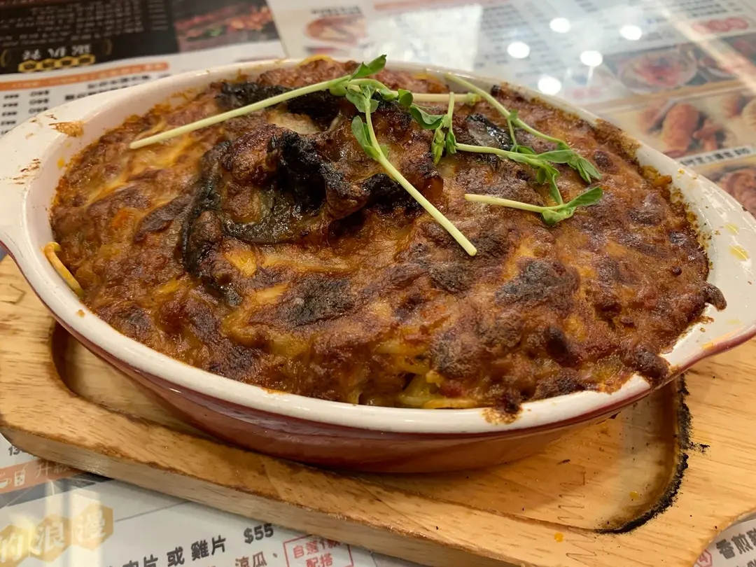 芝士焗鰻魚免治肉醬意粉
