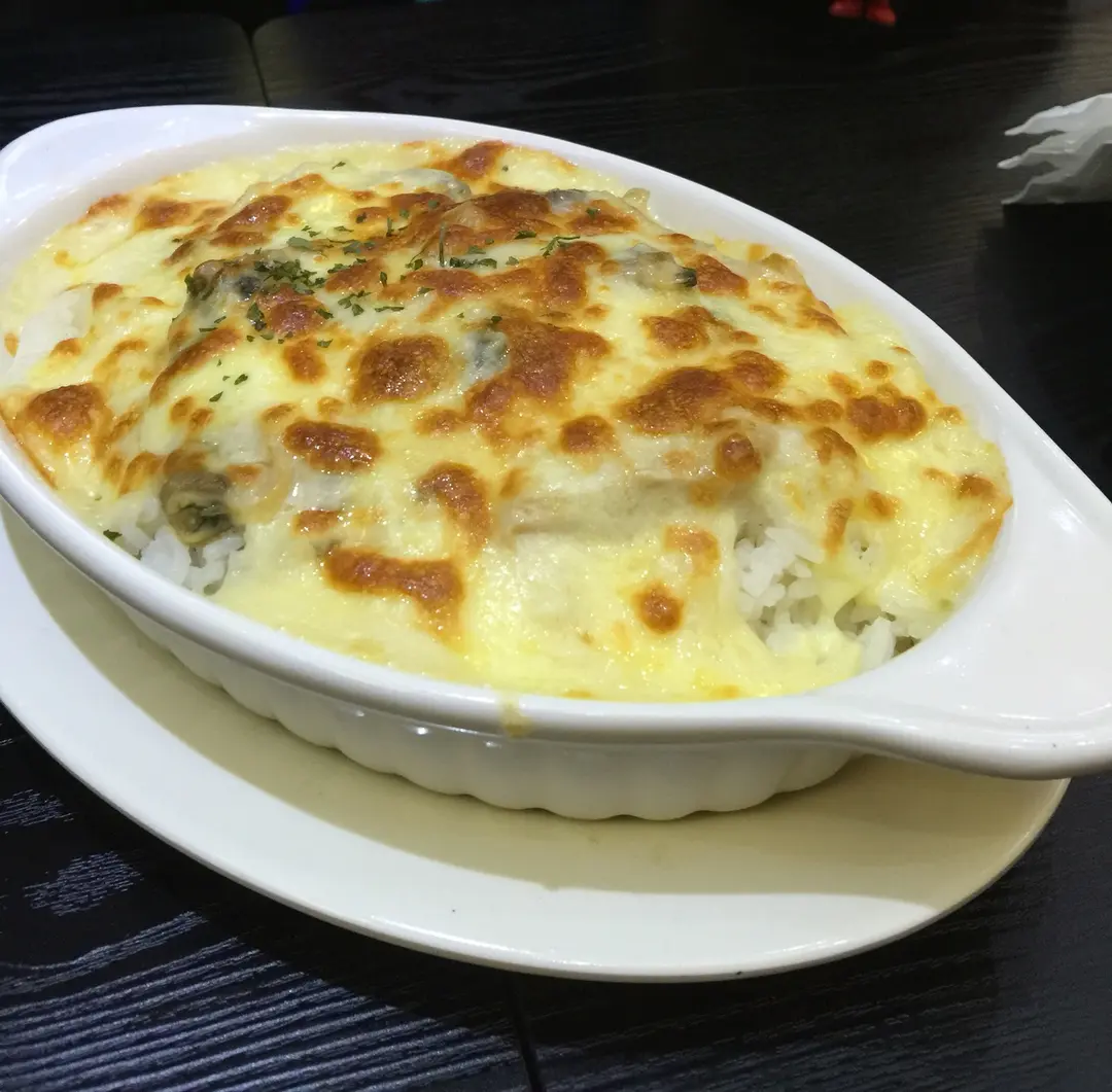 芝士焗蜆肉磨菇飯