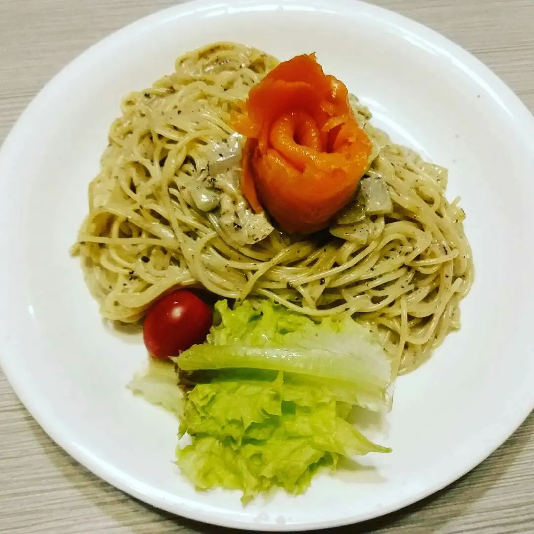 黑松露三文魚忌廉汁天使麵