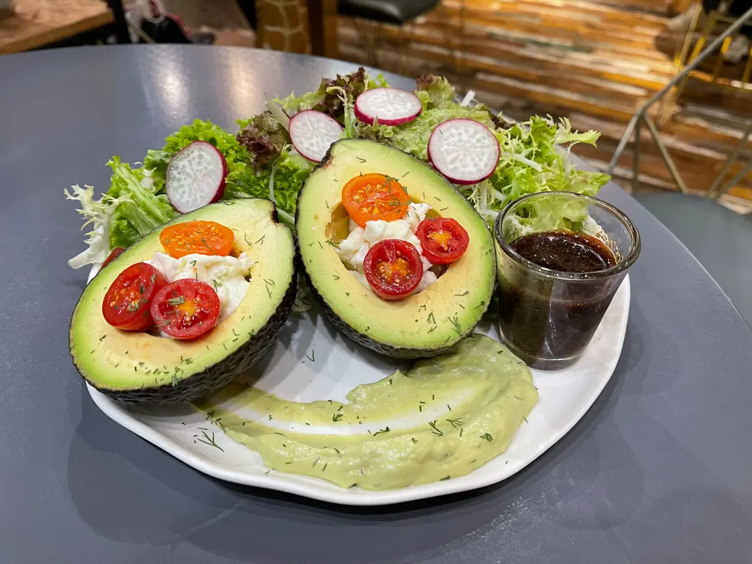 牛油果水牛芝士蕃茄波波沙律配柚子黑醋汁