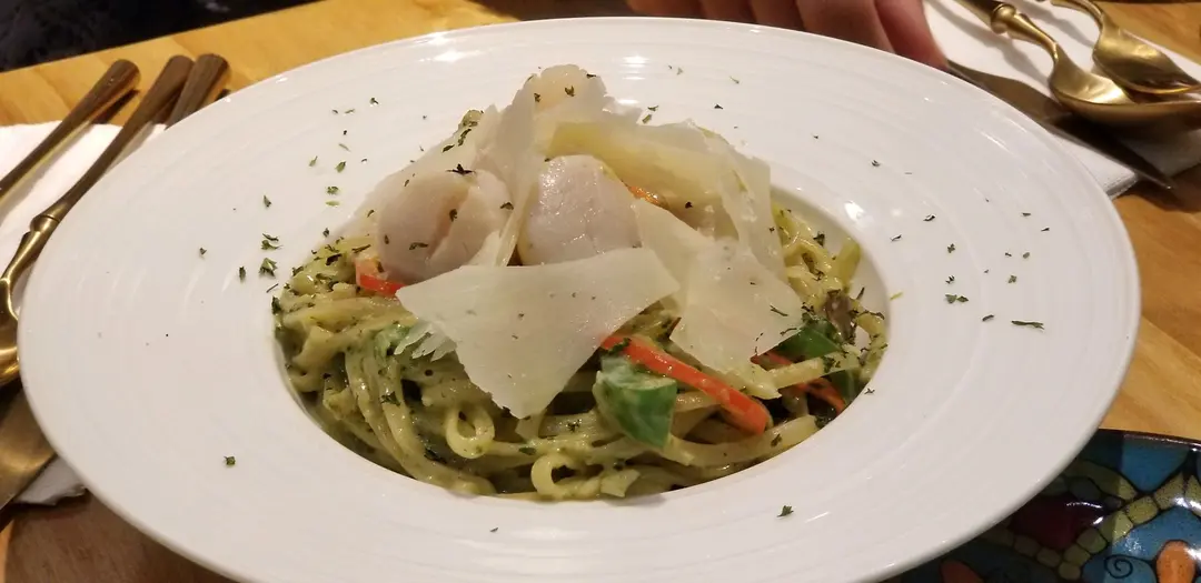 青醬帶子綠意粉