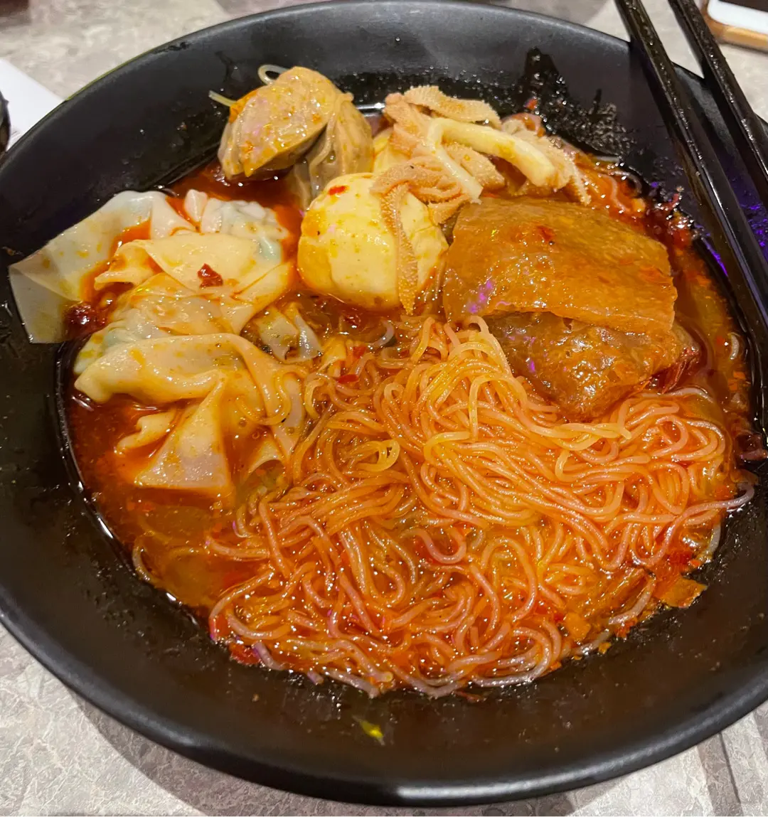 韭菜餃 墨魚丸 豬皮 米粉 中辣 加麻辣