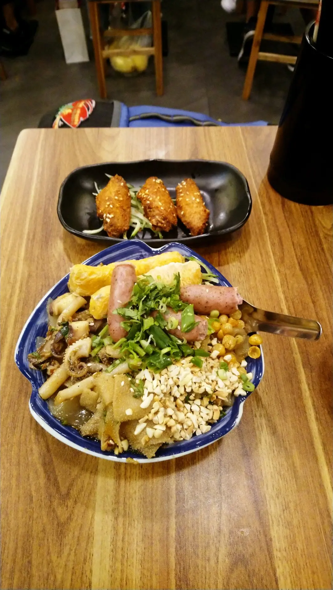 招牌手工涼皮 + 黑椒腸 + 牛栢葉 + 墨魚頭 + 腐皮蝦卷,二荊條雞翼 × 3隻