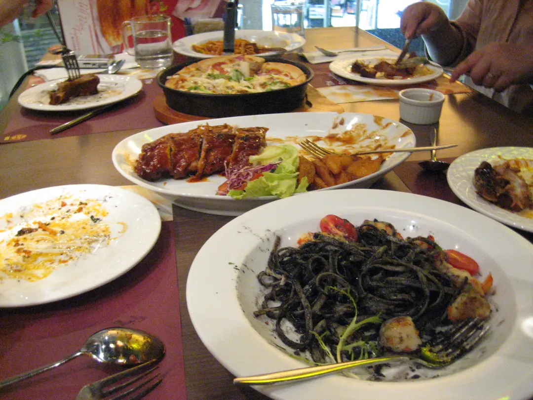 拿破倫意粉、油墨意粉、豬肋骨併薯仔、Pizza