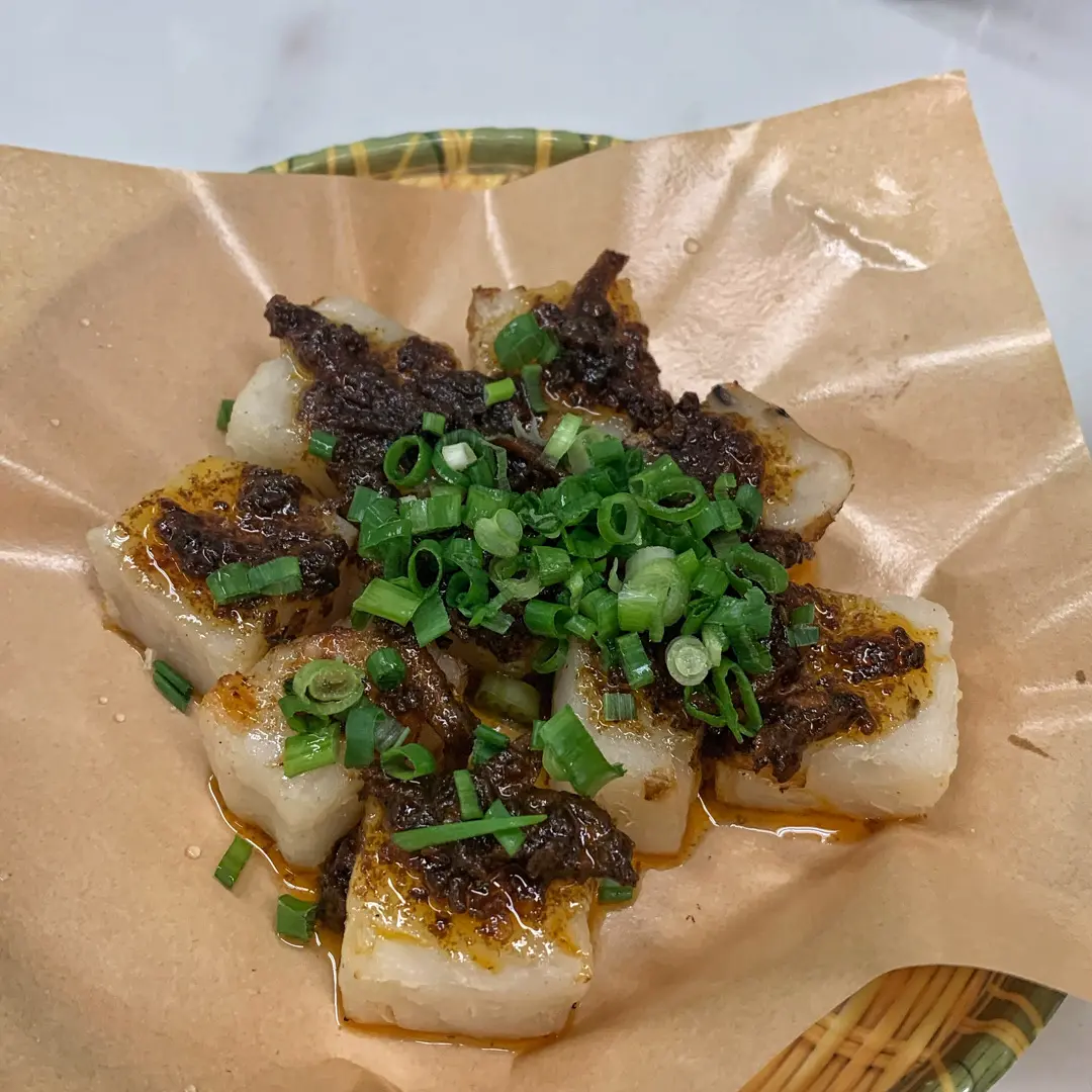 Turnip Cake with Ikan Bilis Sauce 魚子醬蘿蔔糕