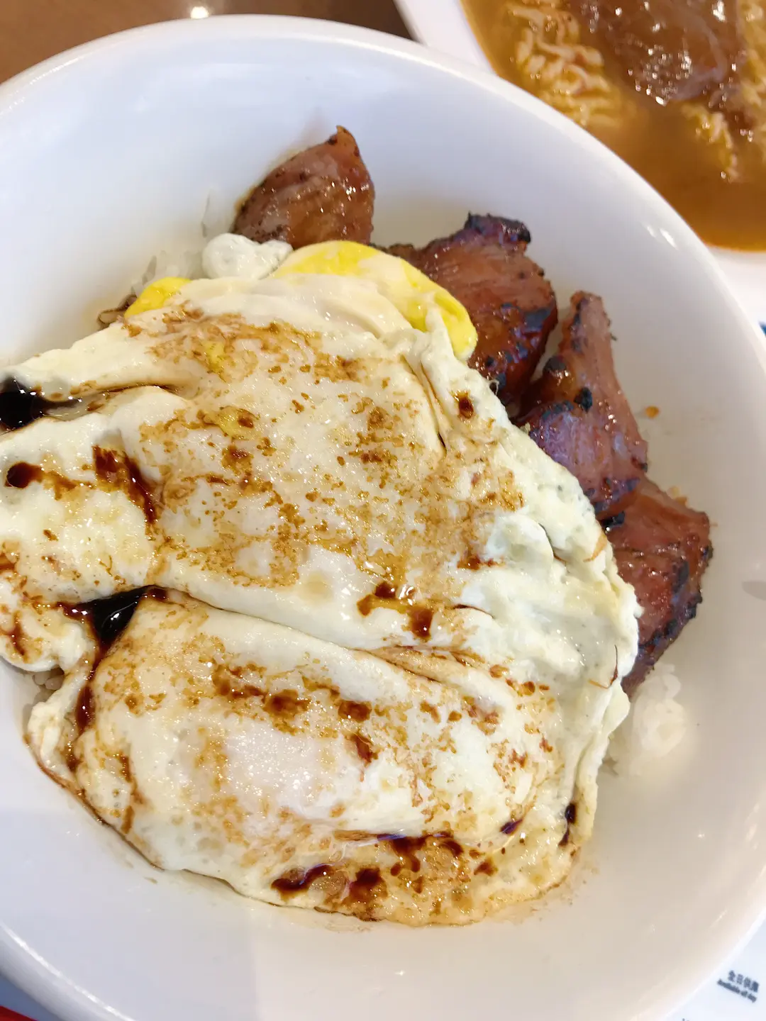 Men wah bbq pork with egg and rice