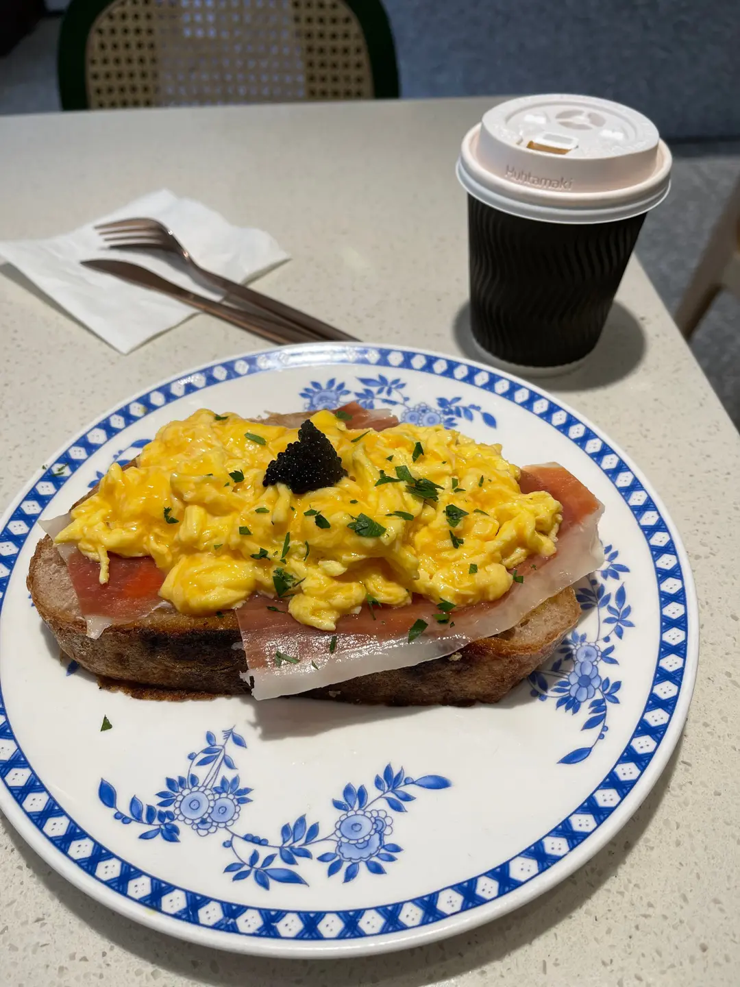 炒蛋西班牙火腿黑魚籽多士