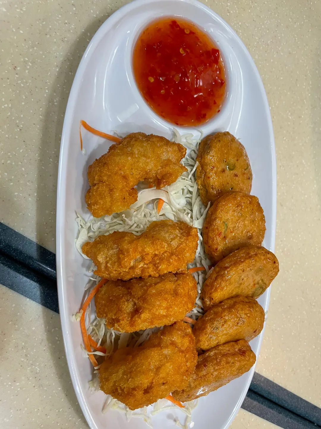 炸魚餅拼炸蝦餅