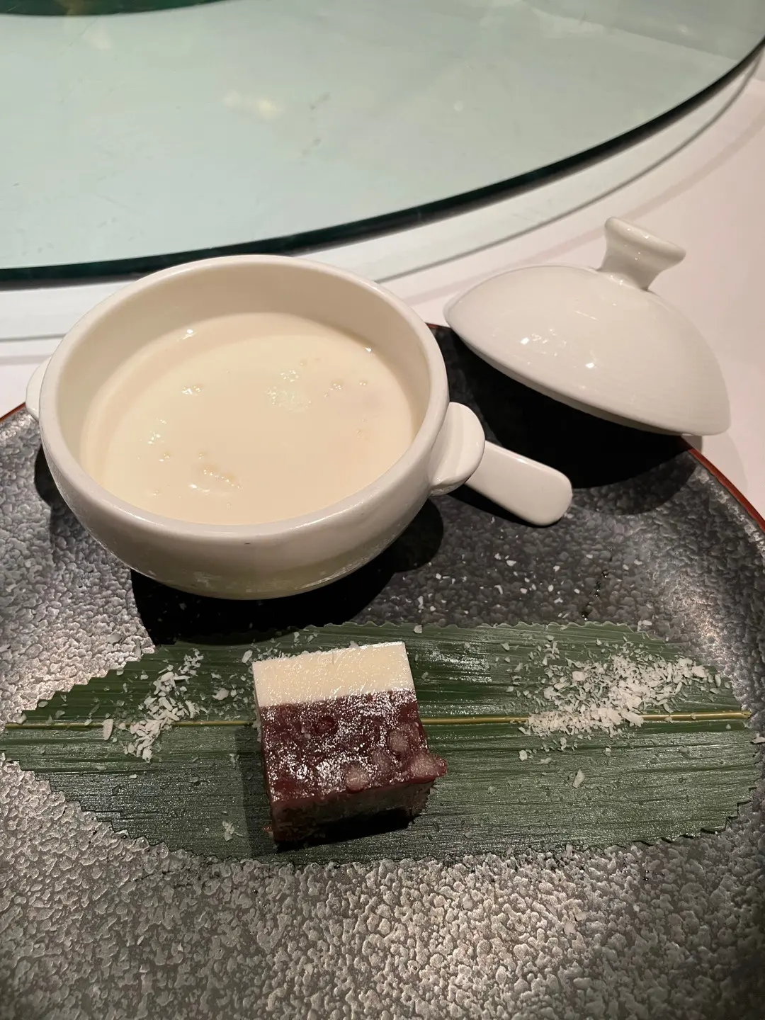 桃膠蛋白杏仁茶拼椰汁紅豆糕