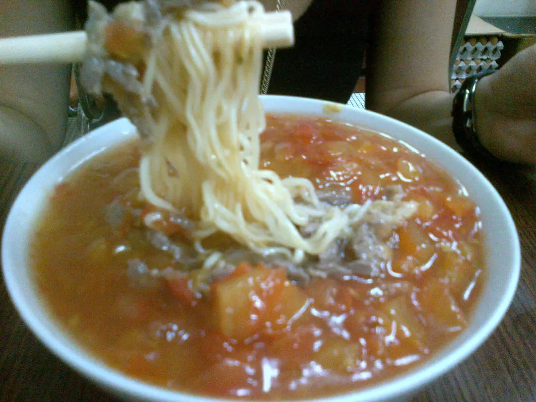 Tomato with beef and nissin noodles