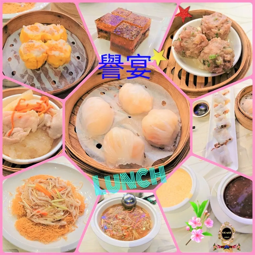 肉絲炒麵 + 雪菜鴨絲窩麵 + 蟹籽燒賣皇 + 山竹牛肉球 + 蟲草花棉花雞 + 蝦餃之王 + 安格斯牛肉腸 + 紅豆桂花糕 + 楊枝甘露 + 陳皮紅豆沙