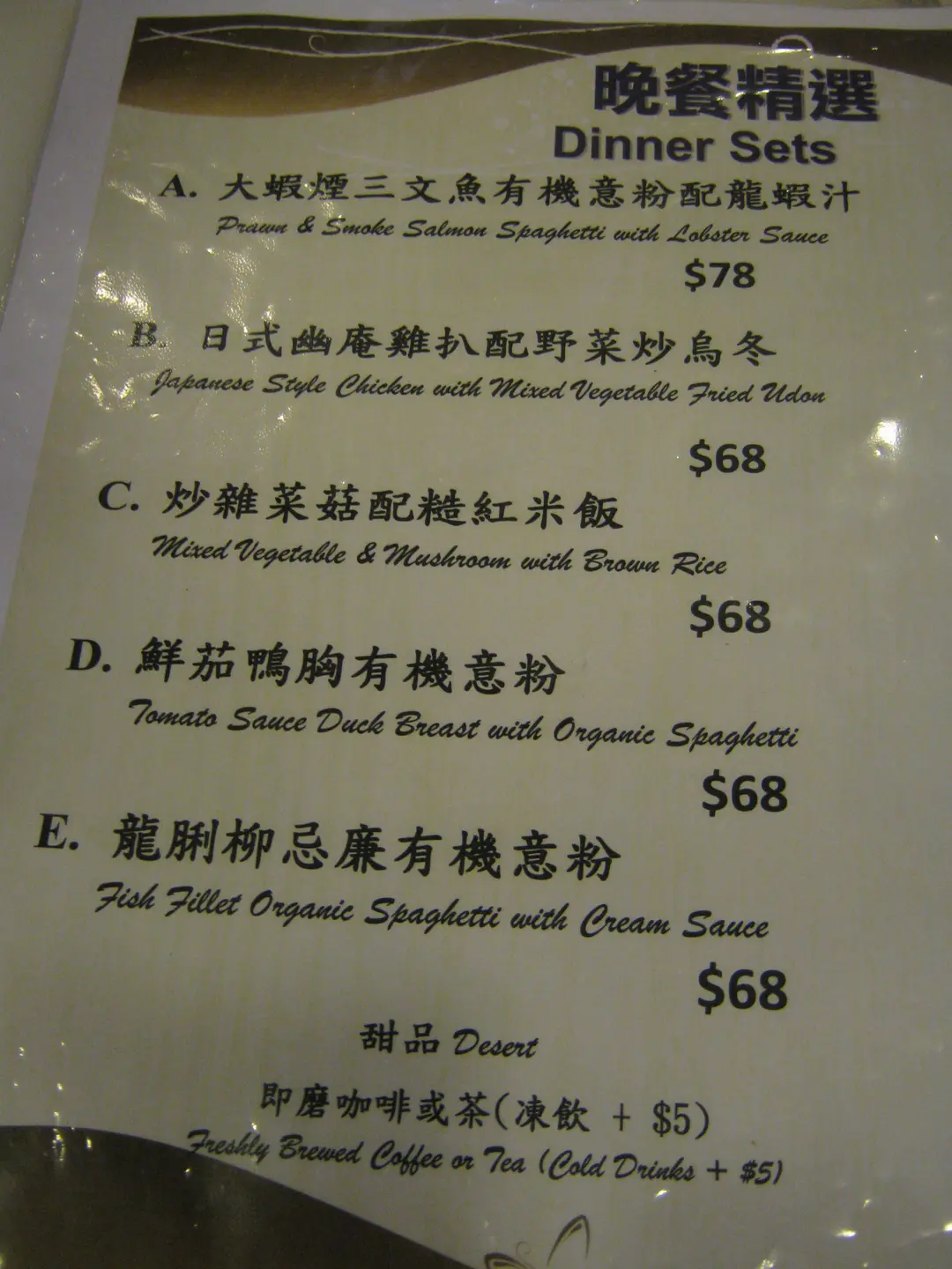 晚市餐牌