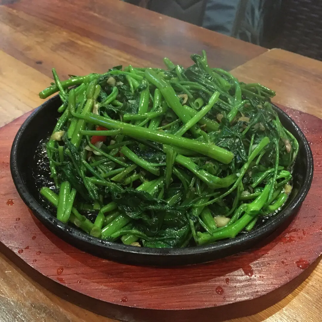 鐵板豬頸肉飛天通菜