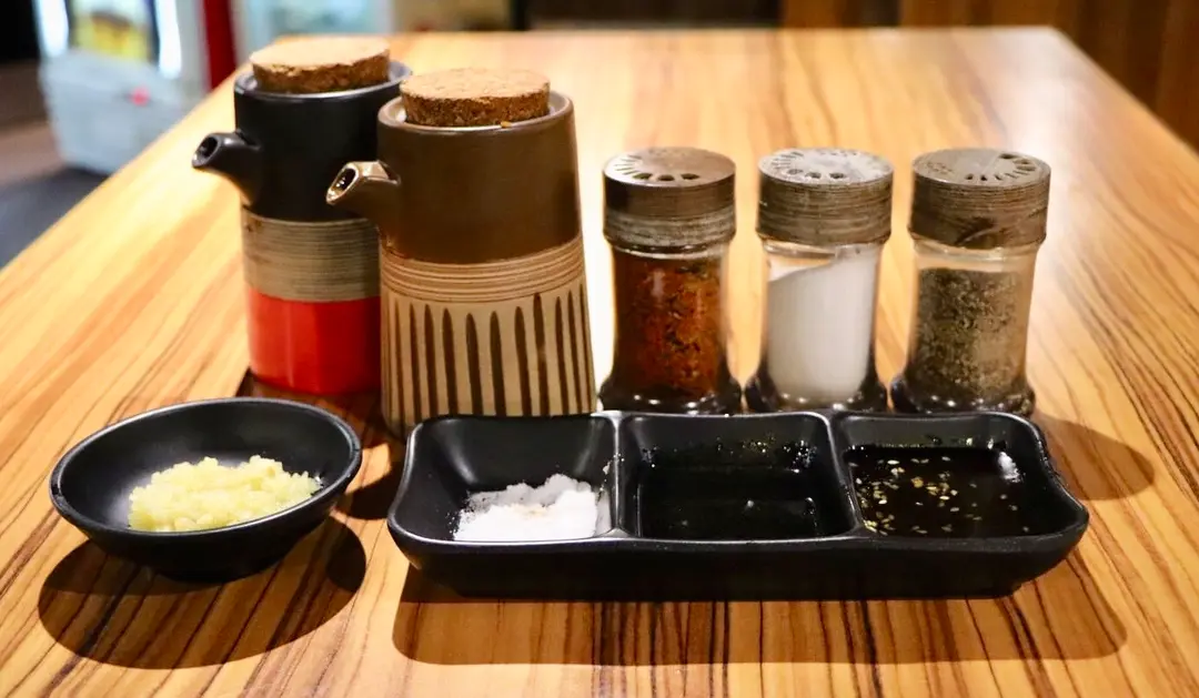 燒汁、醬油、七味粉、鹽、黑椒