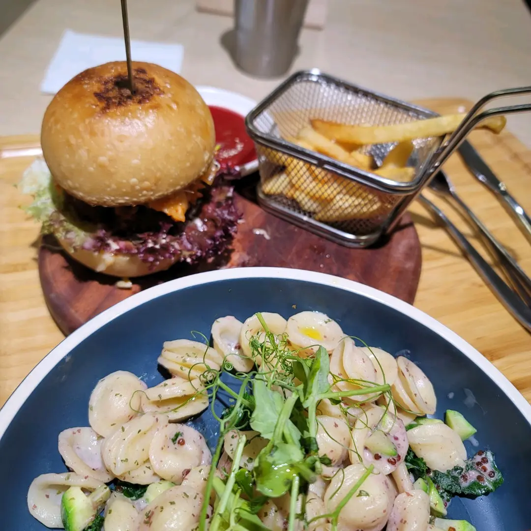 韓式泡菜漢堡,羽衣甘藍貓耳麵