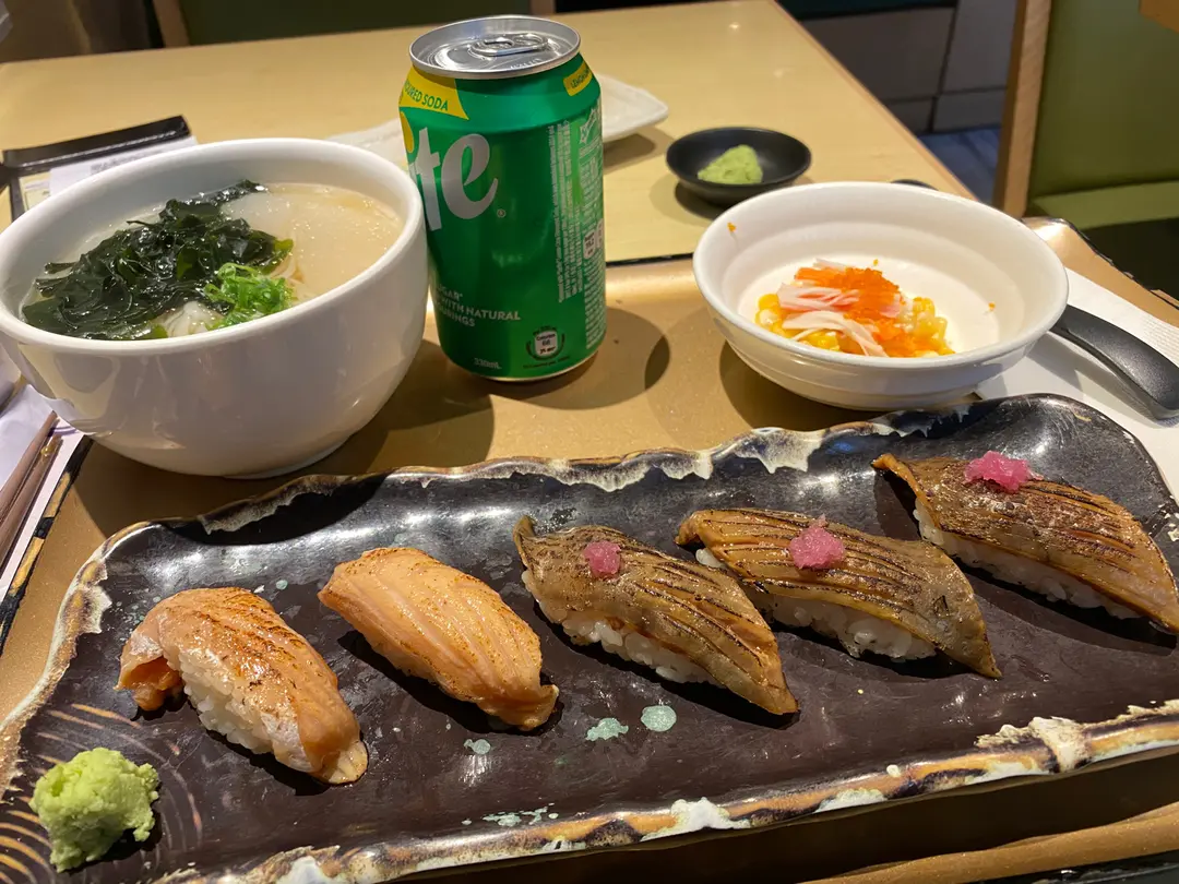 Sushi set; PS waitress姐姐 上菜 上 個tray 大半上台便走;心霖 付service charge 是否 可以付大半 便算