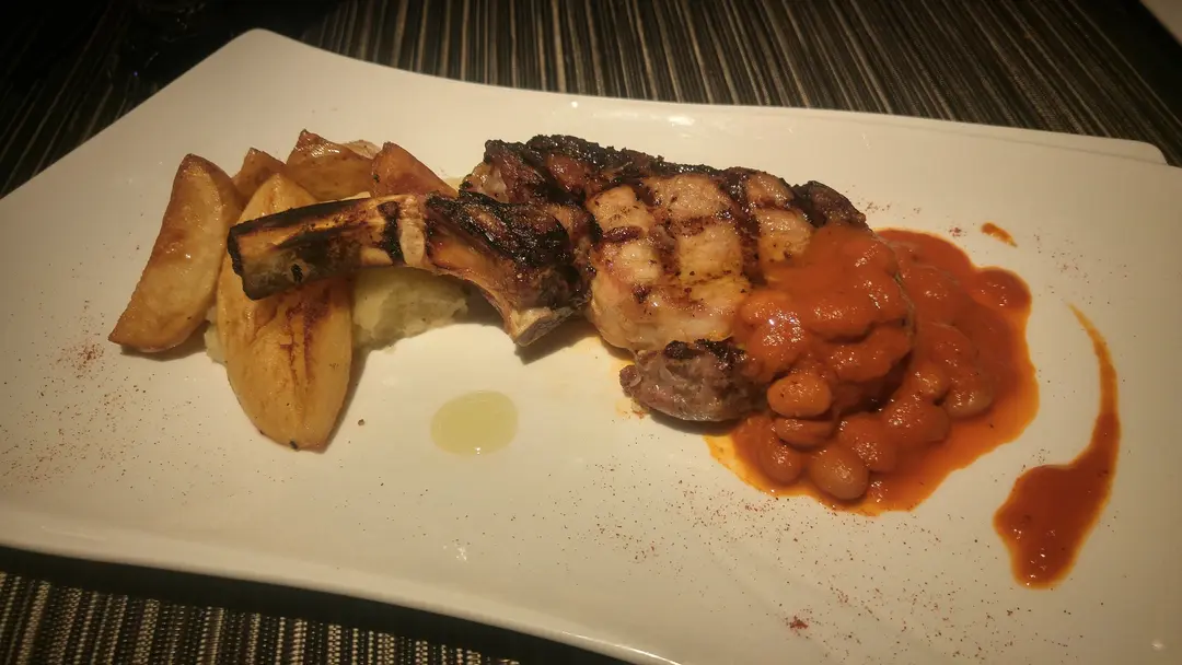 碳燒西班牙豬鞍扒 配茴香茄汁紅莓豆