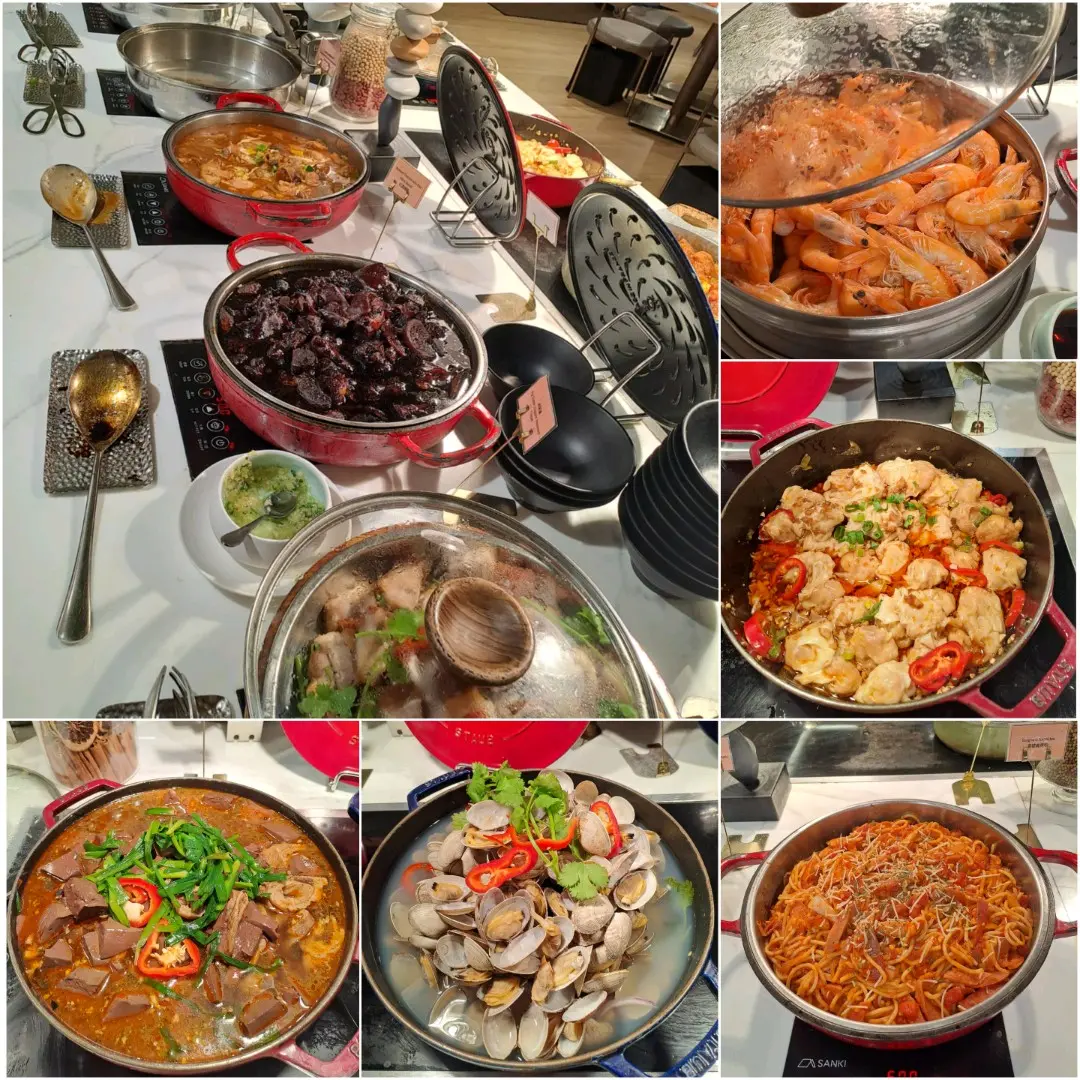 熱盆熟食 - 燒腩肉、韭菜豬紅、紅油抄手、炆鴨掌、煮蜆、比目魚、豬腳薑等