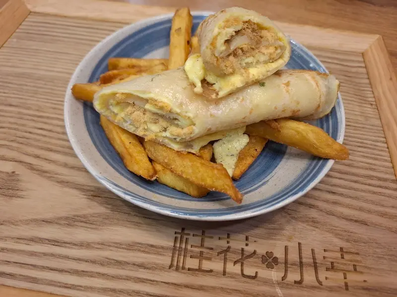 台式蛋餅(肉鬆) + 地瓜薯條