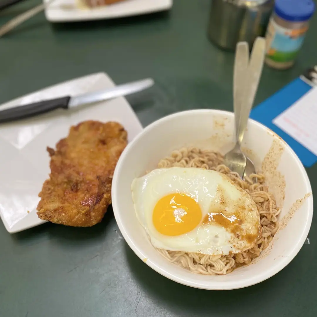 炸豬扒沙嗲牛汁蛋撈丁