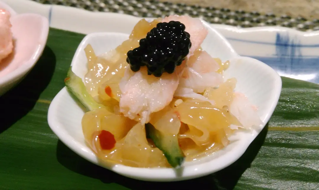 黑魚子松葉蟹肉海蜇