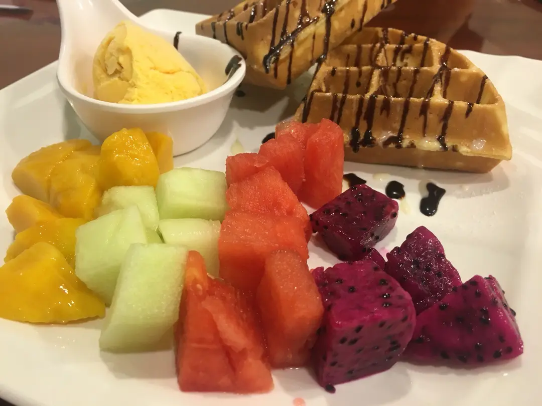 窩夫香脆,配上少少鍊奶,朱古力醬,味道洽好唔太甜,加埋少少酸既芒果雪糕,一酸一甜,一冷一熱,好有層次既口感!而且中和甜味,夠fresh.