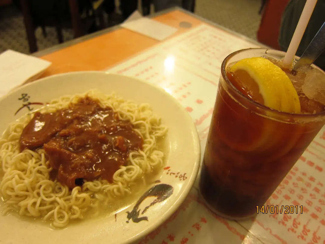 沙爹牛肉麵及凍檸茶