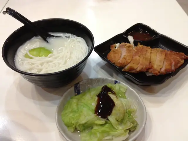 泰式豬頸肉湯麵及油菜