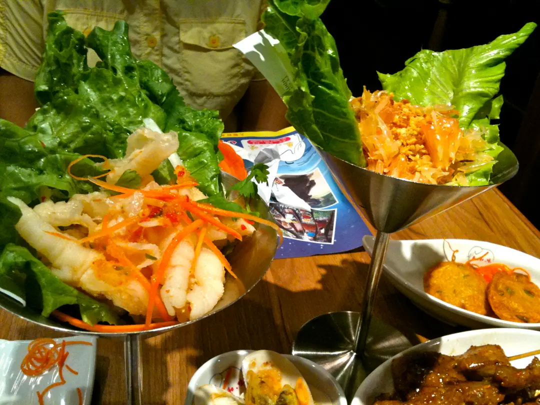 泰式鳳爪及金油沙律青口沙嗲串燒蝦餅