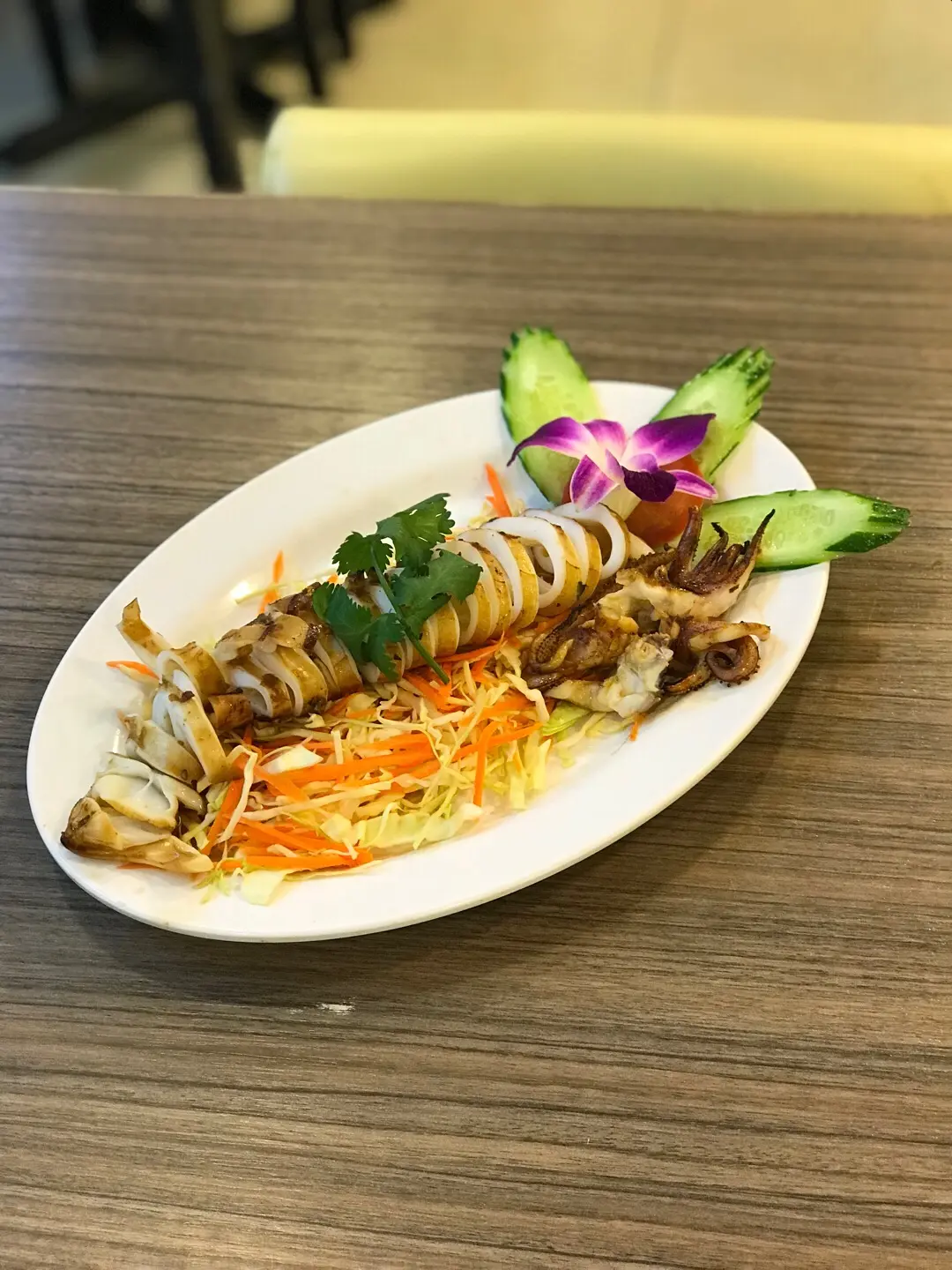 南瓜軟殼蟹,爆炸蝦,酸甜鰂魚,燒羊架,蛋包金邊粉,燒魷魚