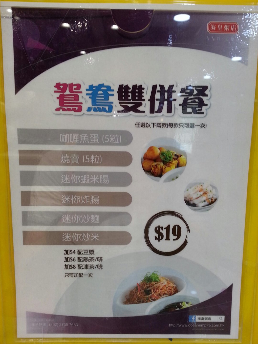 鴛鴦雙併餐餐牌