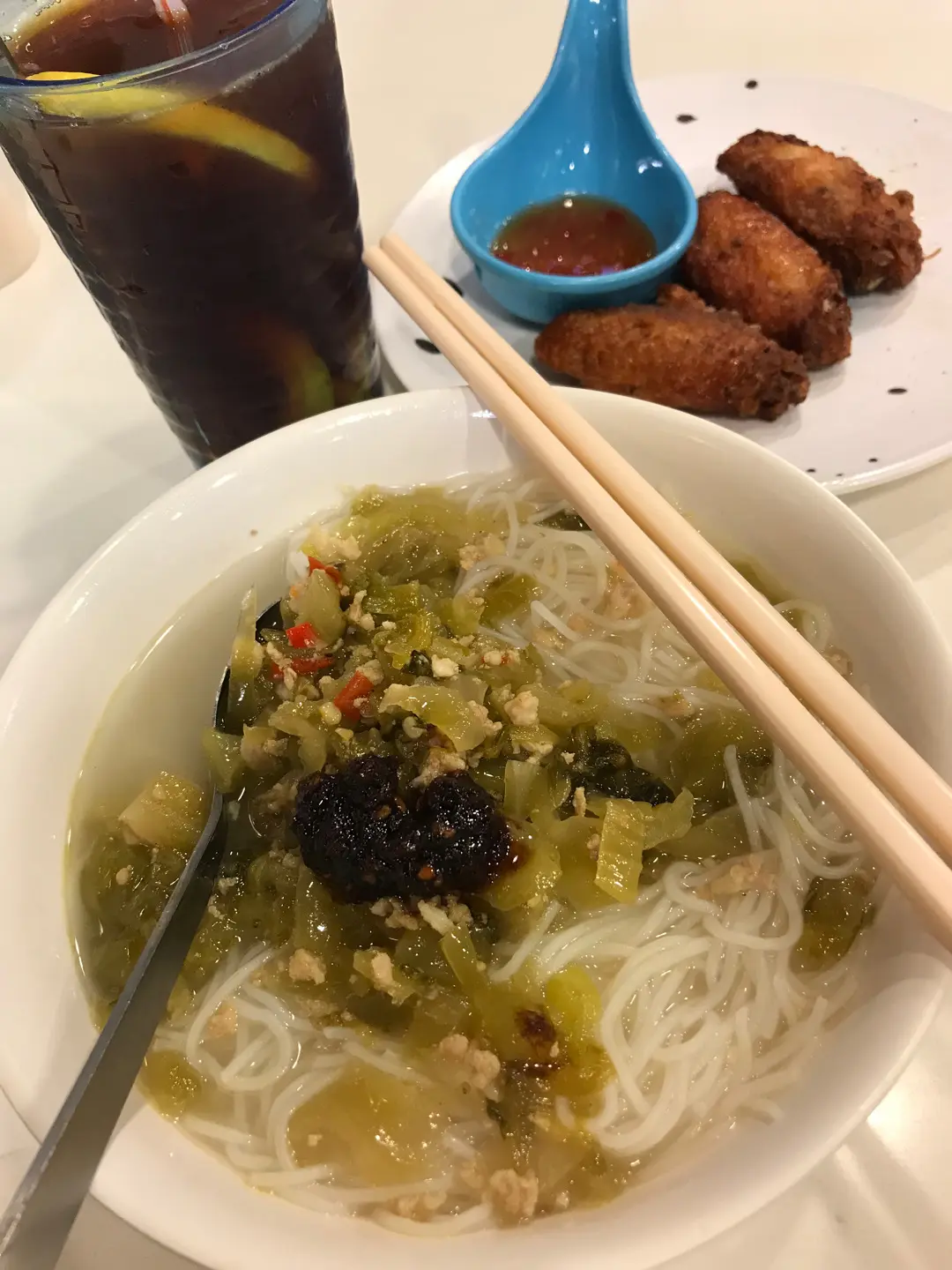 酸菜肉碎雞翼米粉 凍檸茶