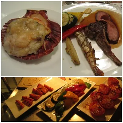 海鮮焗扇貝-扇貝切碎加入薯蓉, 味道一般. 羊鞍-唔羶, 肉嫩好味. 燒蝦-我呢隻霉既.