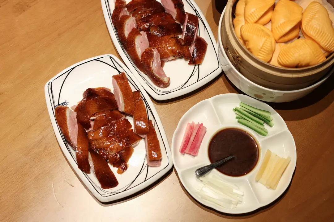 Special Hoisin Sauce, Sliced Cucumber, Melon, Spring Onion, Pickled Turnip