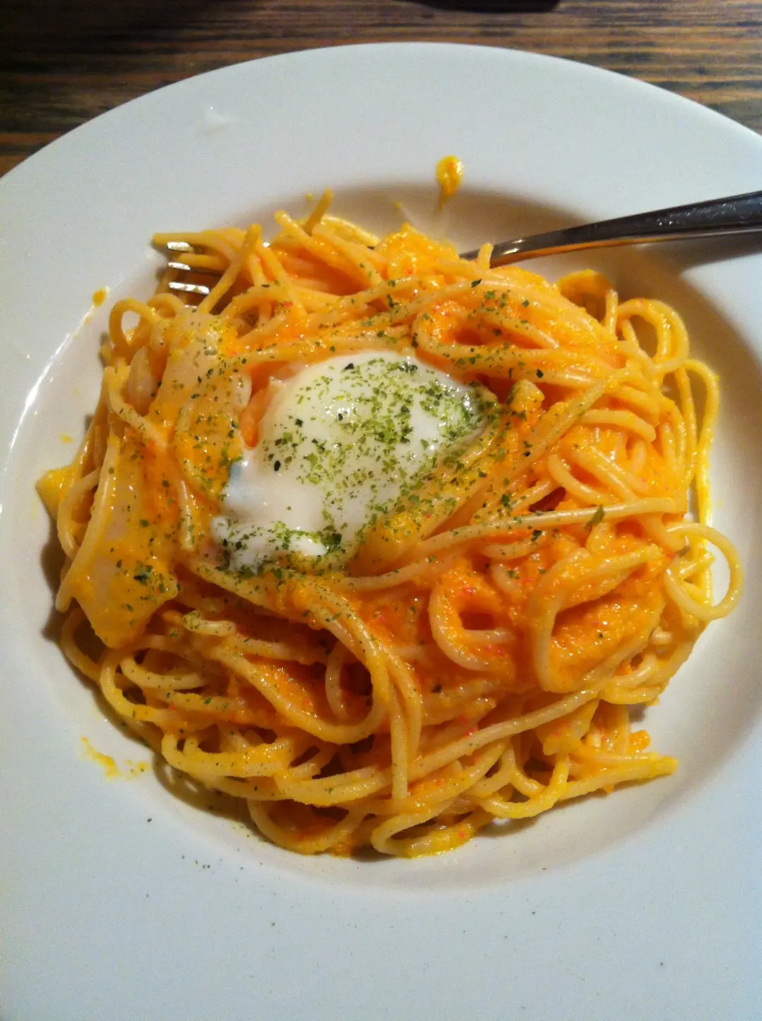 溫泉蛋明太子墨魚意粉
