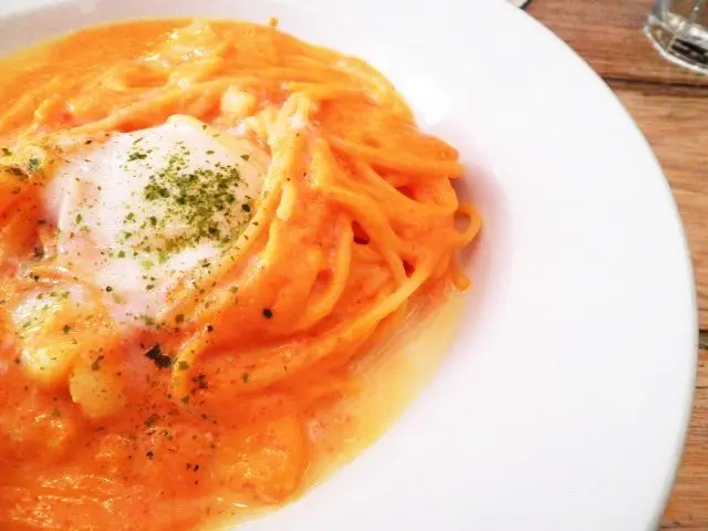 溫泉蛋明太子墨魚意粉
