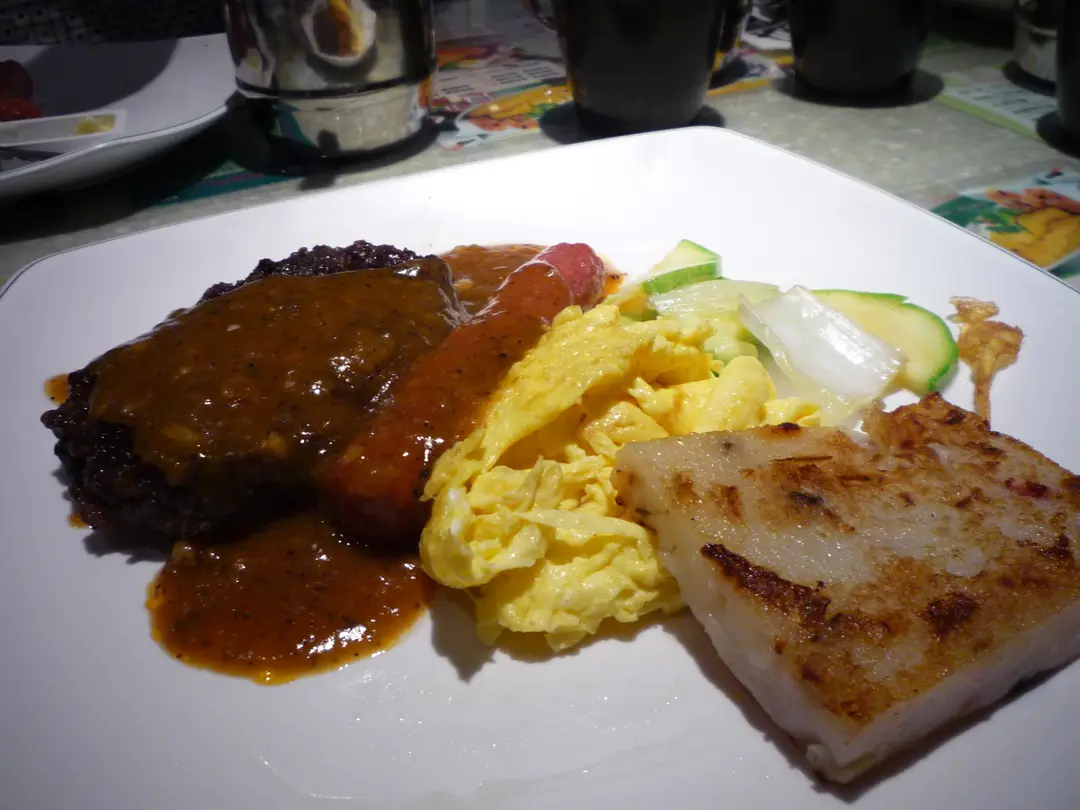 漢堡扒?! + 腸仔 + 炒蛋 + 蘿蔔糕