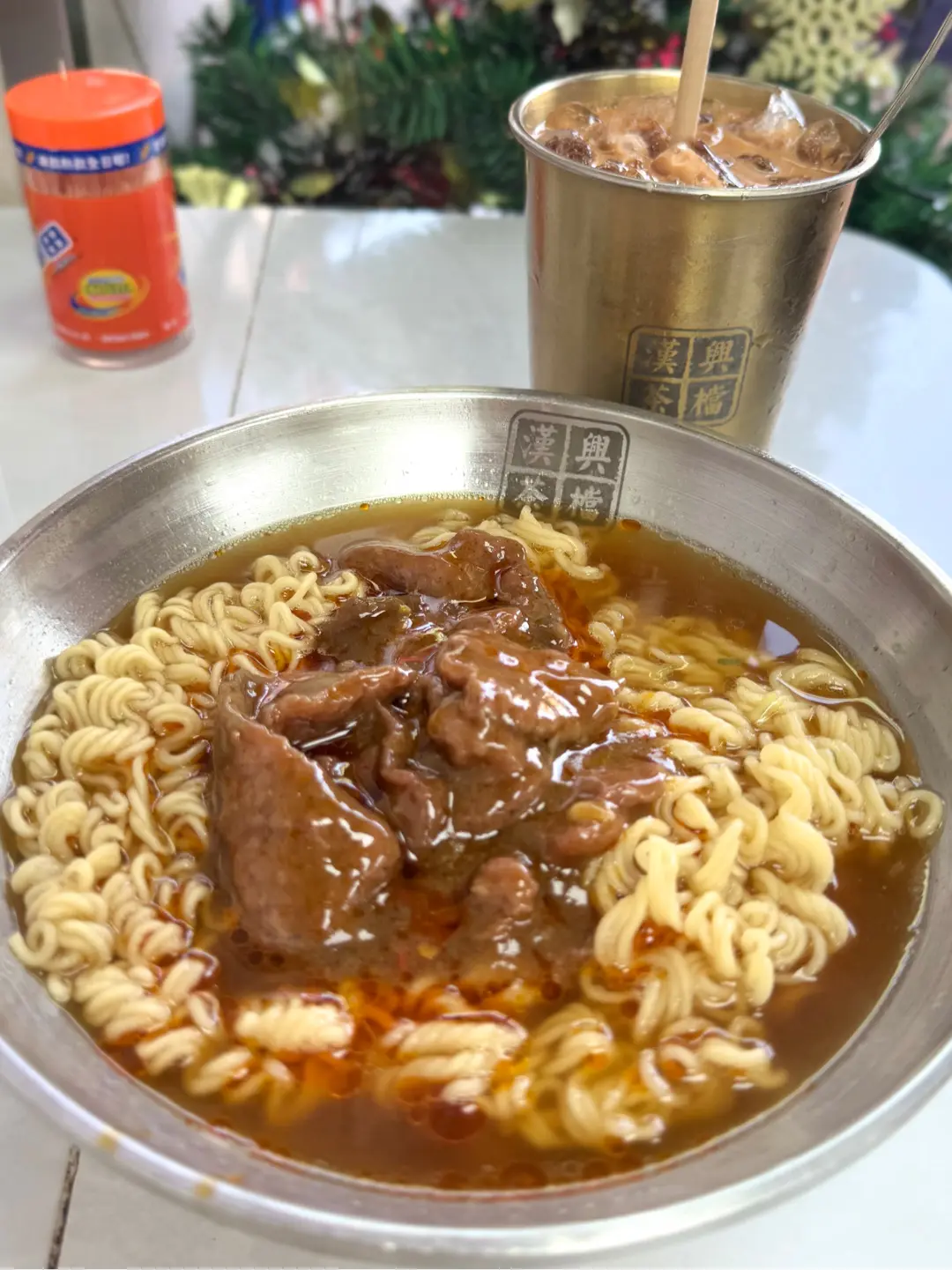 沙爹牛肉麵、凍奶茶