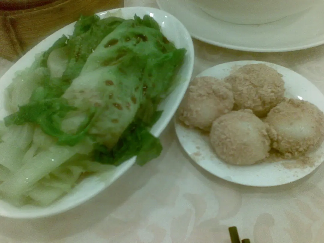 灼生菜、擂沙湯圓