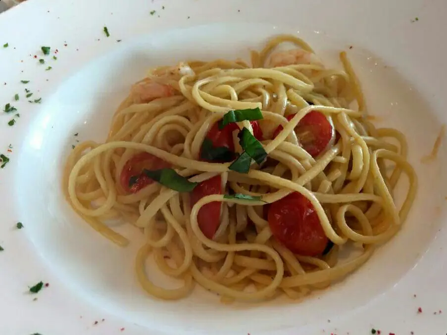 鮮蝦車厘茄配扁意粉